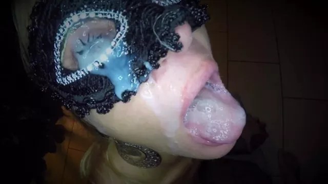 Dutch girl with needle pierced tits sucks cock and gets his cum in her eye
